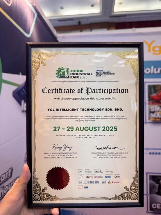 YGL Intelligent Technology is proud to announce our participation as an exhibitor at the Johor Industrial Fair 2025, Southern Malaysia’s premier platform for manufacturing, industrial automation, and digital transformation. The event will be held from 27–29 August 2025 at the Persada Johor International Convention Centre, Johor Bahru, where industry leaders, innovators, and decision-makers will converge to explore the future of smart technologies. You can find us at Booth No. J130.